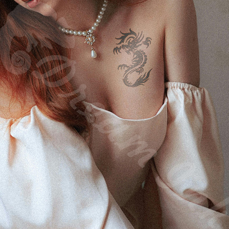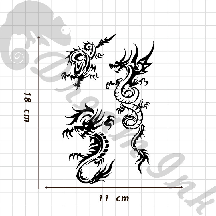 漸黑刺青貼:幾何飛龍紋身