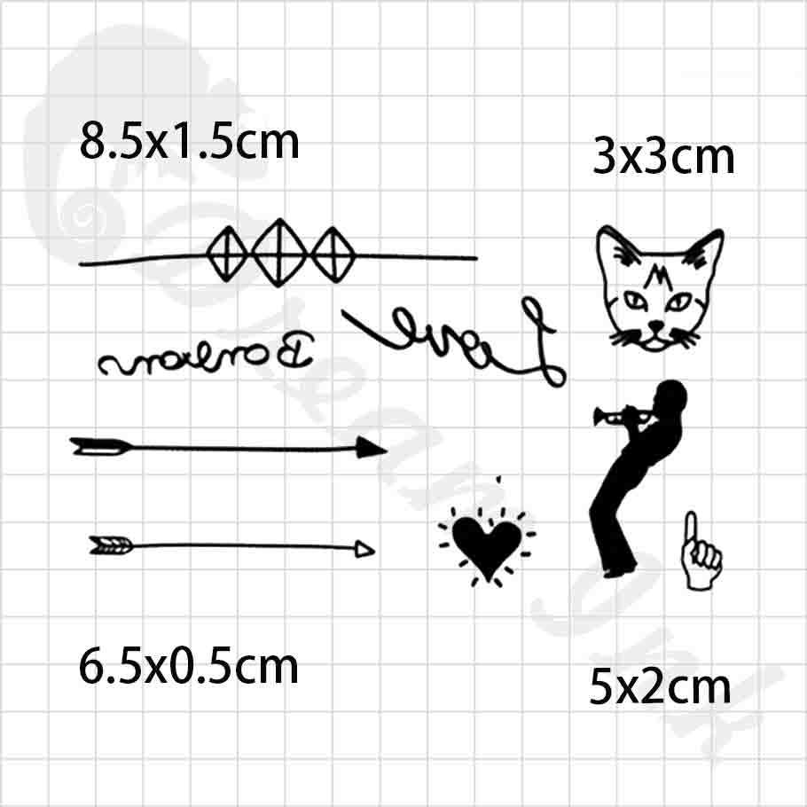 漸黑刺青貼:小喇叭手與貓 W167